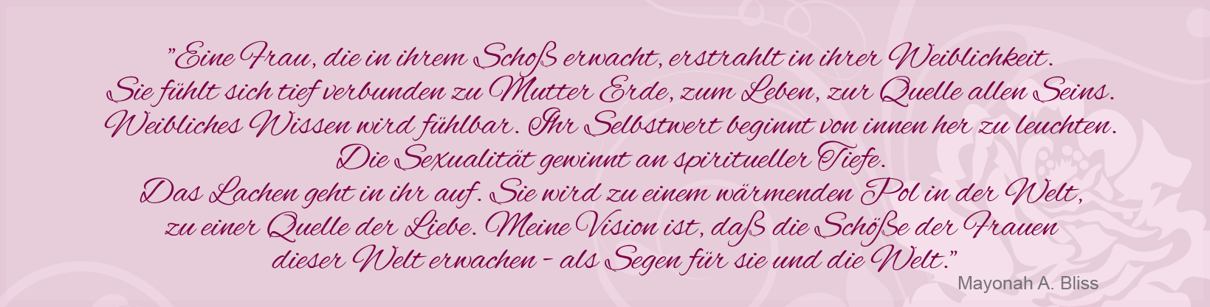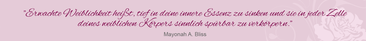 Erwachte Weiblichkeit heißt für mich, tief mit meiner innersten Essenz verbunden zu sein und sie in jeder Zelle meines weiblichen Körpers sinnlich spürbar zu verkörpern. Die Essenz der weiblichen Kraft liegt im Schoßraum. Wenn unser Schoßraum erwacht, erblüht unsere Weiblichkeit. Unsere Würde und unser Strahlen kommt zurück. Das Lachen geht in uns auf.